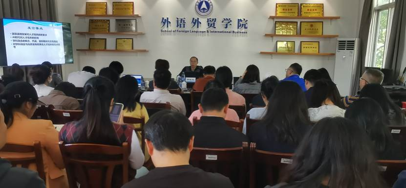 11月7日下午,广东外语外贸大学郭桂杭教授应邀来学校为买球体育官方网站老师做“学科融合视域下的商务英语人才培养”专题讲座,学院党委书记、院长唐琳等院领导和全体英语老师参加了讲座。