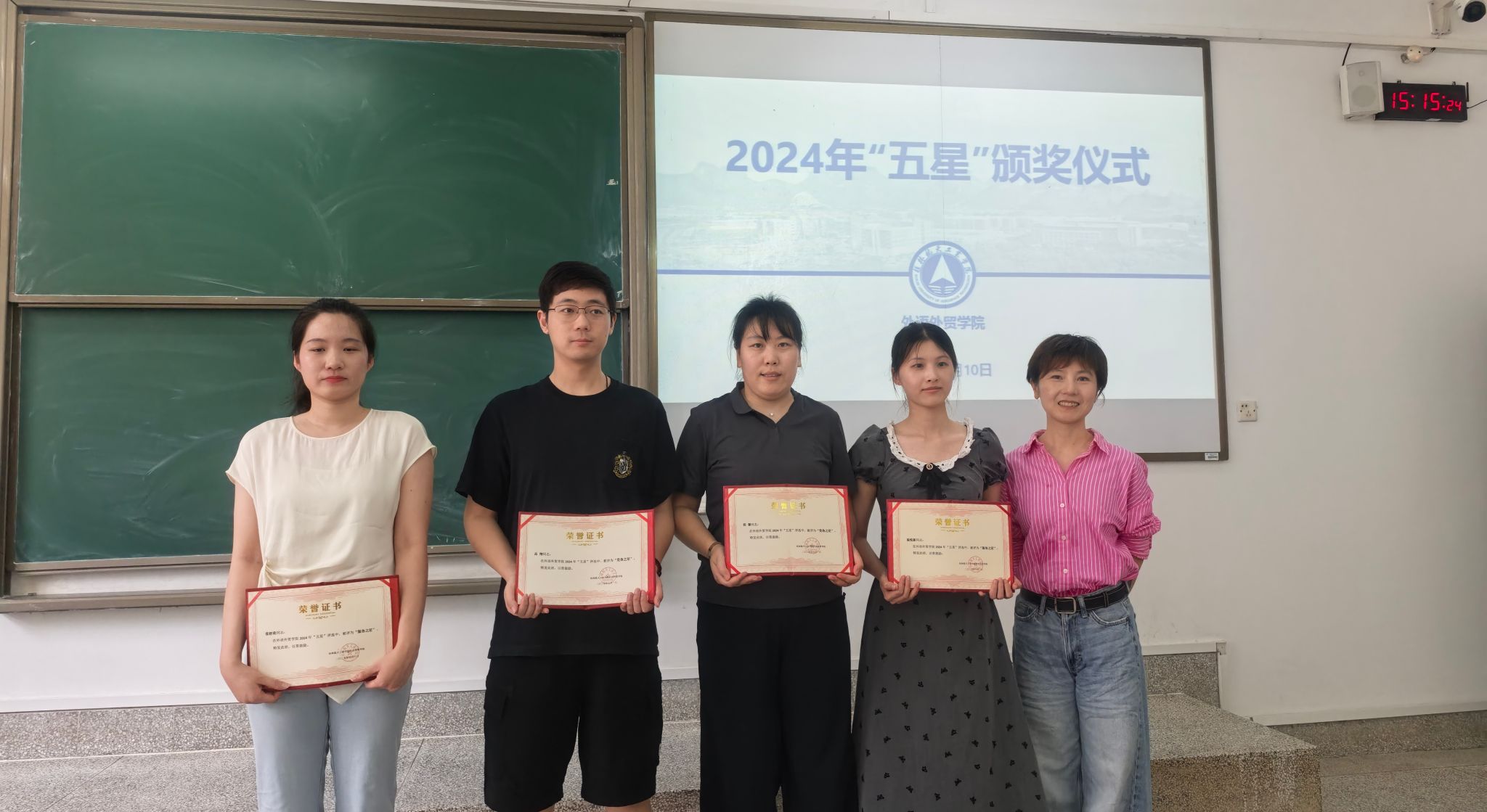 为树立典型,表彰先进,号召学院教职工向优秀代表学习,7月10日下午,买球体育官方网站在致远楼102教师举行学院2024年度“五星”颁奖仪式。