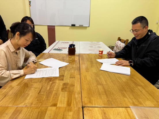 随后,在双方代表的共同见证下,刘伟副院长与黄郁萍校长共同签署《实习实践基地合作协议》。根据协议,双方将围绕两大核心领域开展深度合作:一是共建实习实践平台,培训学校为汉语国际教育专业学生提供教学实习、课程研发等岗位;二是推行 “双师共育” 模式,高校教师与企业导师共同制定实习计划、开发实训课程。