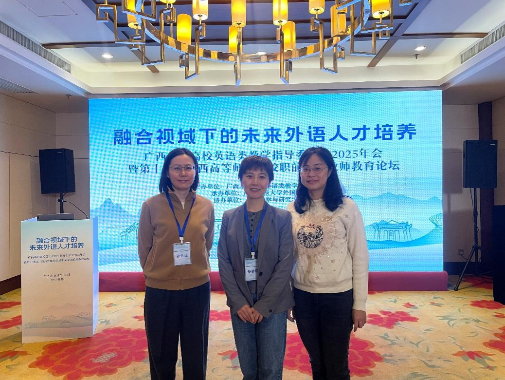 年11月22日-23日,广西本科高校英语类教学指导委员会 2025 年会在桂林桂山华星酒店举行。学院唐琳书记、赵振华副院长(主持)、商务英语教研室陈林林老师应邀出席,深度参与了此次学术交流活动。