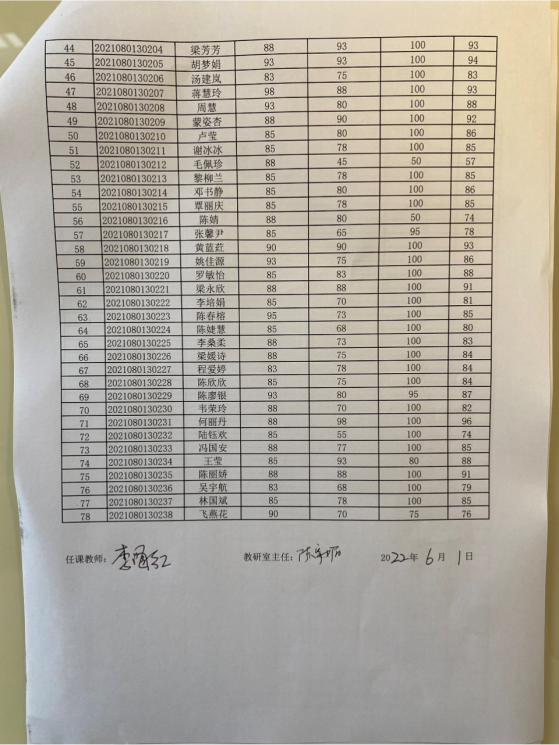 黄婷老师2022春所带班级平时成绩公示