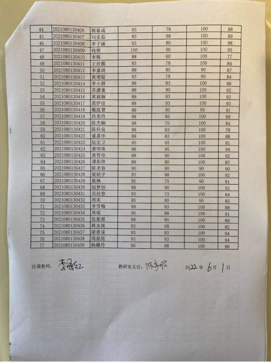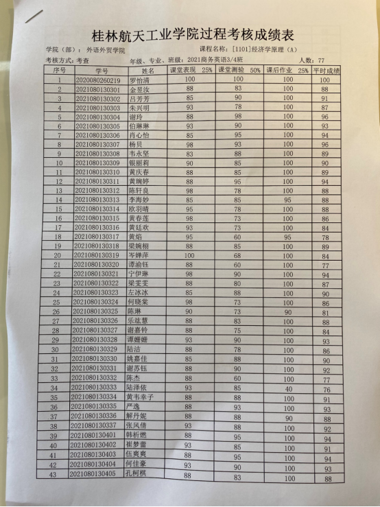 【1101】经济学原理(A)李海红老师所带班级平时成绩公示