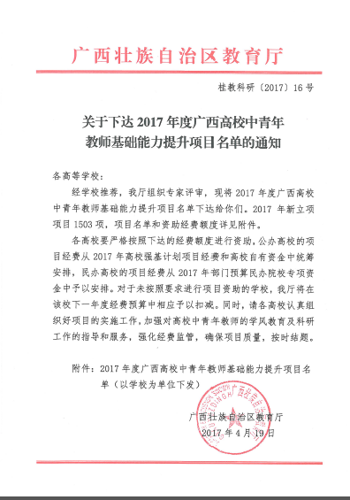 莫菲菲、赵振华、黄兰堞三位老师申报的项目分别获2017年度广西高校中青年教师基础能力提升项目立项
