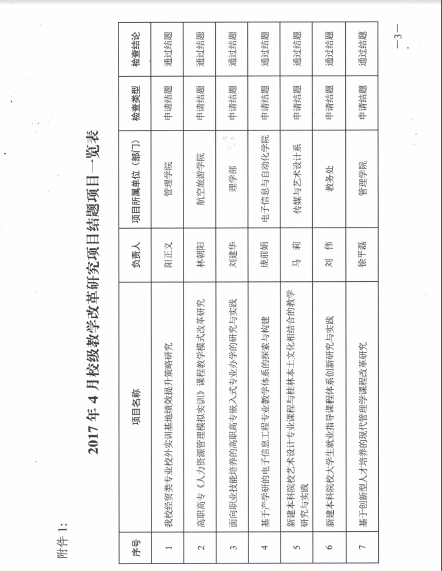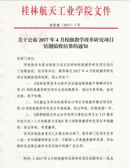 关于公布2017年4月校级教学改革研究项目结题验收结果的通知