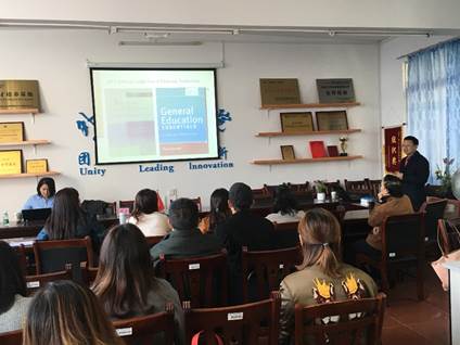 随后曾贞博士做了题为“外语全人教育与教师发展”的讲座。她认为中国外语教育应该是基于“道”的全人教育,强调要将实现“全人教育”的培养目标作为外语教育的终极目标。并从“道德经”的层面出发,详细阐释了“全人教育”的概念及其对外语教学的影响和意义。