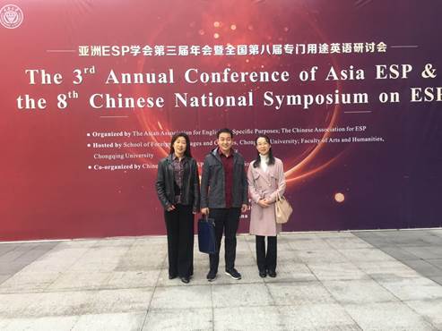 11月15日,亚洲ESP第三届年会暨全国第八届专门用途英语研讨会在重庆大学隆重召开。买球体育官方网站朱云翠、张芳、李响林三位教师应邀参加此次会议。本次会议以“ESP教学与研究:创新、挑战与展望”为主题,探讨在“一带一路”和“双一流”背景下,如何开展ESP教学与研究以培养满足国家和社会需求的高素质人才。