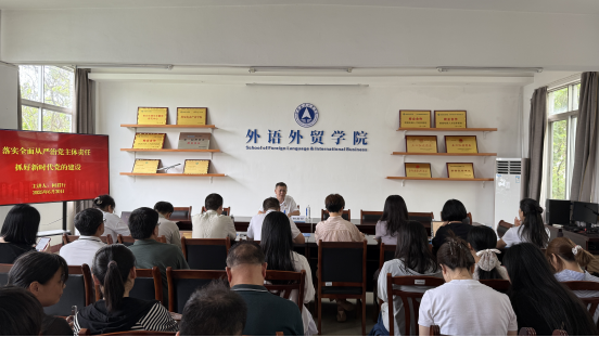 柯君行副校长列席旁听学院党委理论学习中心组。学院党委中心组学习了习近平总书记关于《加快建设文化强国》和《加快建设教育强国》的重要论述,以及党的十八大以来深入贯彻中央八项规定精神的成效和经验,并结合学院的实际情况交流了学习心得和体会,柯君行副校长在总结点评中提出要求,要将理论学习内化于心,外化于行,将理论学习转化为实干担当的行动能力,加快学院建设,推动学校的高质量发展。