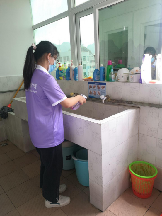 4月22日,为践行上级部门“学党史 强信念 跟党走”学习实践要求,为广大同学塑造一个健康舒适的生活环境,我院在北校区学生宿舍组织开展了“我为同学做件事”宿舍清洁消毒活动,消毒范围主要包括宿舍阳台、卫生间及各卫生死角。