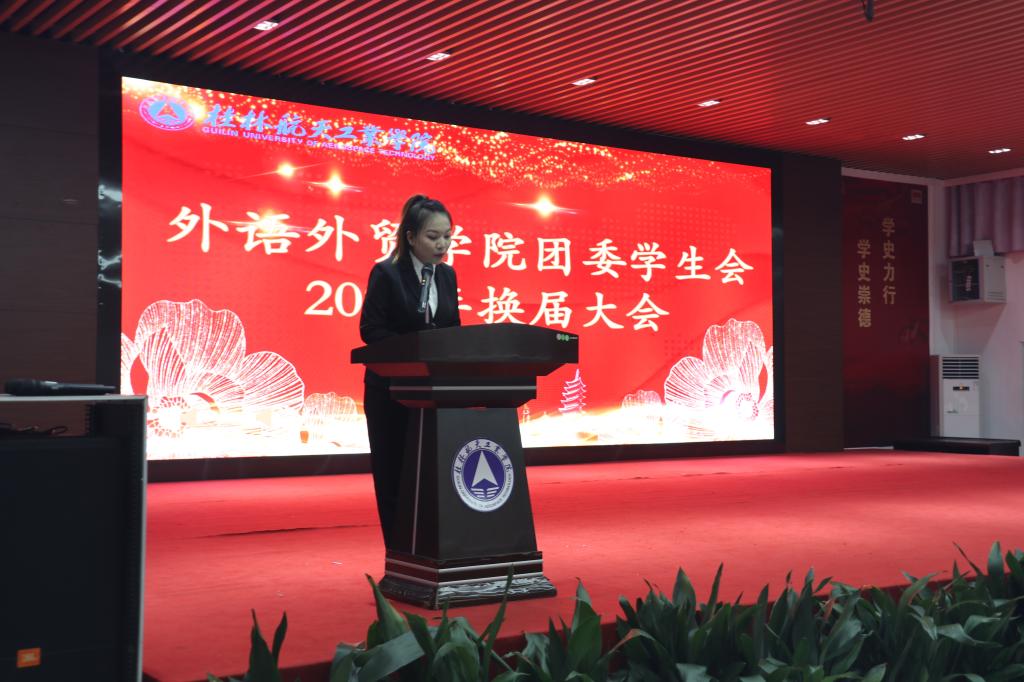 大会由院学生会副主席刘慧主持。庄严的国歌、团歌拉开了大会的序幕。随后,团委副书记余昊洋、学生会主席莫倩文分别对2021—2021学年团委工作、学生会工作作了报告,总结了我院团委学生会一年来的工作,分析不足,为下一年院团委学生会工作开展指明了方向。最后,学院党总支副书记李志老师为本次大会作了重要讲话,充分肯定了我院团委学生会一年来工作取得的成绩,也为新一届团学干部提出了希望。