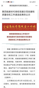 近日,教育部思想政治工作司下发《教育部办公厅关于开展第四批新时代高校党建示范创建和质量创优工作的通知》(教思政厅函[2023]17号),我支部书记翟洁教授主持申报的OBE工程认证教育理念指导下的“三位一体、三型赋能、‘三进’联动”建设方案获批全国党建工作样板支部(见图1)。